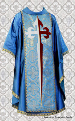 Por fim, temos o azul. A utilização de paramentos desta cor, foram um privilégio concedido pela Santa Sé, em 1864, às Igrejas de Espanha e Hispano-América, na festa e oitava da Imaculada Conceição. O azul é, pois, associado pela tradição a Nossa Senhora, simbolizando a sua pureza e virgindade.